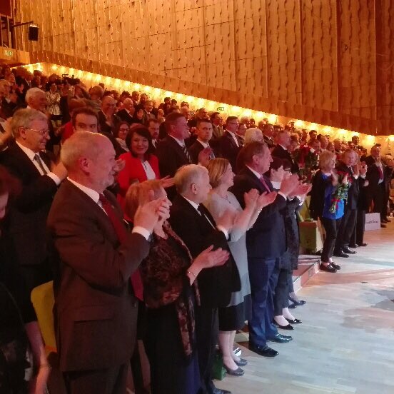 Prezes PiS J. Kaczyński oraz delegacja Rząd i PiS podczas uroczystego koncertu z okazji jubileuszu 80. urodzin Jana Pietrzaka.
